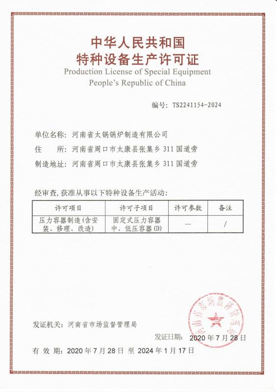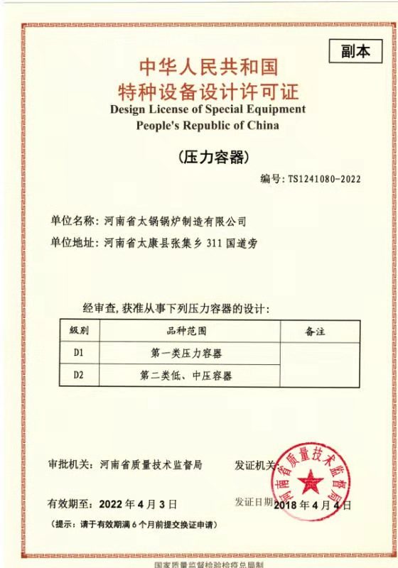 河南省太鍋鍋爐制造有限公司(原河南省太康鍋爐廠始建于1976年)始建于70年代初,經(jīng)40多年的艱辛探索,靠科技興業(yè),走科學(xué)管理之路,現(xiàn)已發(fā)展成為承接制造、安裝、設(shè)計大、中型供熱系統(tǒng),生產(chǎn):SZS燃油燃?xì)庹羝仩t、燃煤蒸汽鍋爐、燃油鍋爐、燃?xì)忮仩t、電加熱鍋爐、生物質(zhì)鍋爐、茶水鍋爐、有機熱載體鍋爐、熱風(fēng)鍋爐,蒸壓釜、燃油蒸汽鍋爐、燃?xì)庹羝仩t、燃油熱水鍋爐、燃?xì)鉄崴仩t并承擔(dān)安裝120噸熱水鍋爐、蒸汽鍋爐,生物質(zhì)鍋爐,加工制造一、二類蒸壓釜、壓力容器,化工機械的省一級**企業(yè)。